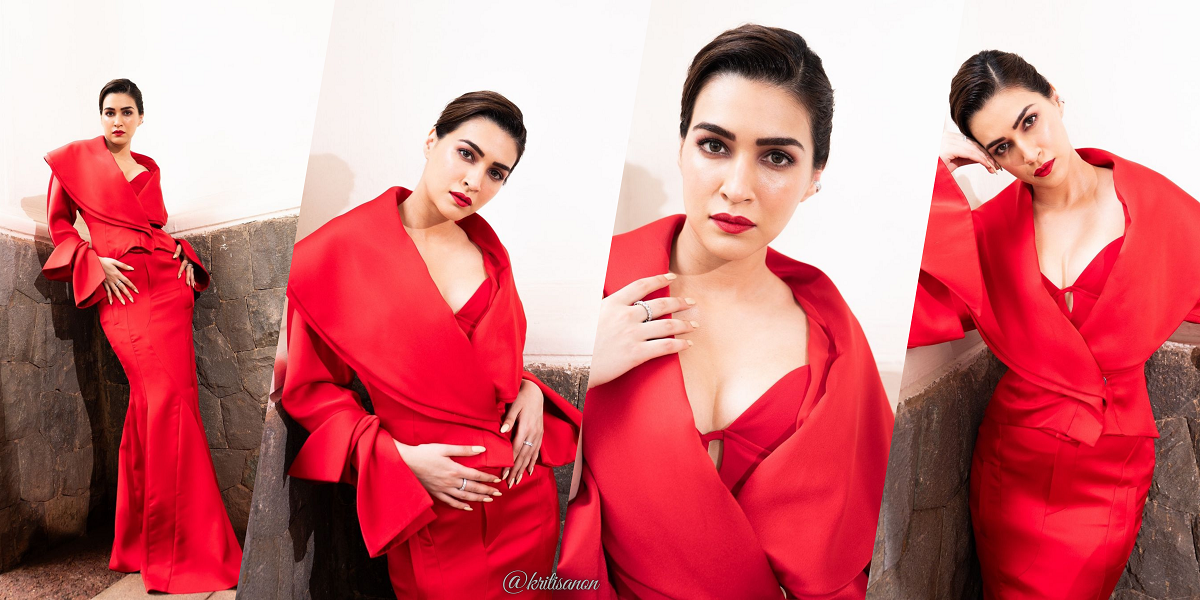 Posing against a rustic stone backdrop, Kriti looked every bit the fashion icon she is. The contrast between her fiery red outfit and the earthy tones of the background made her stand out even more, highlighting the brilliance of her fashion choice.