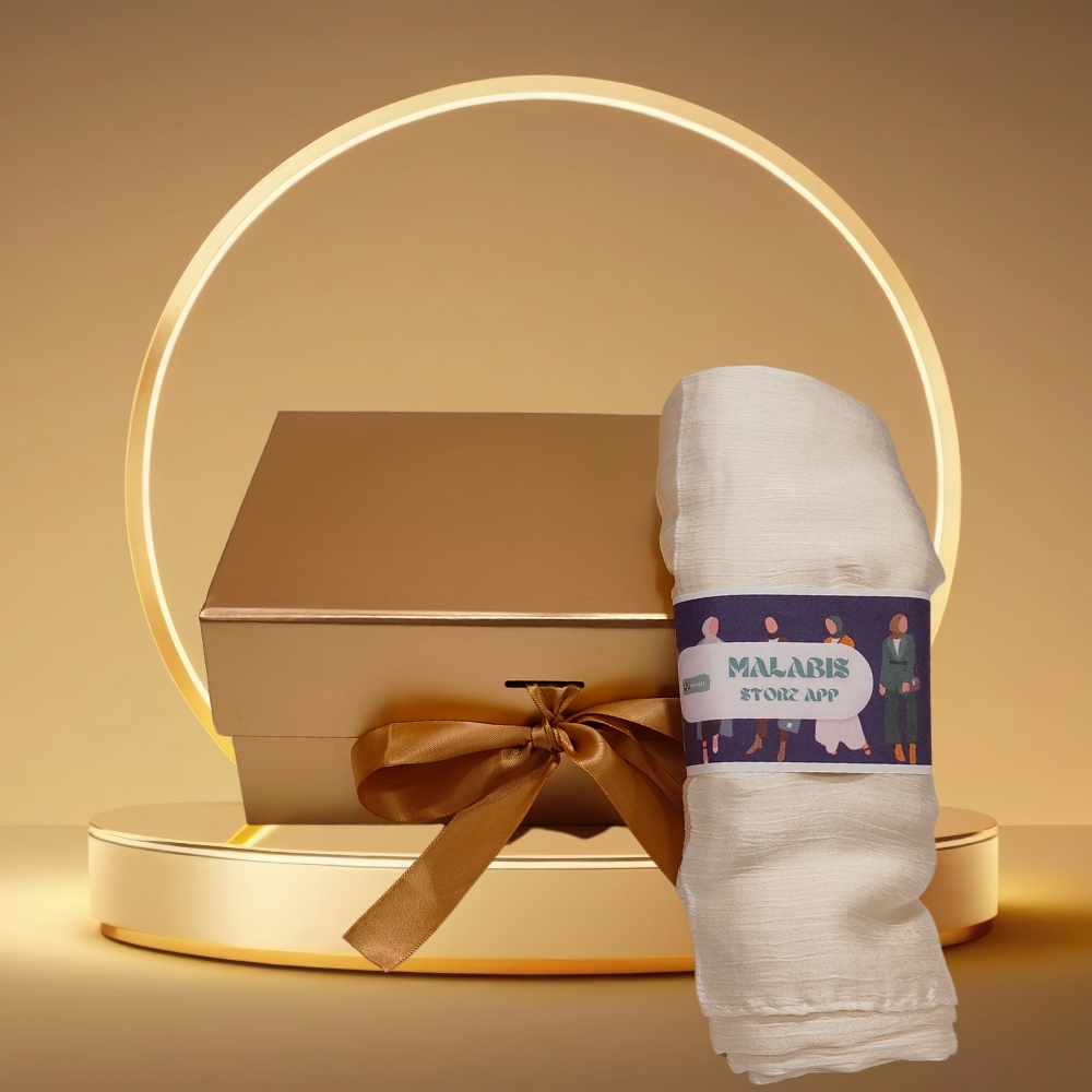 The Ivory Muna Satin Stole Hijab is crafted from premium satin fabric that provides a smooth, luxurious feel.