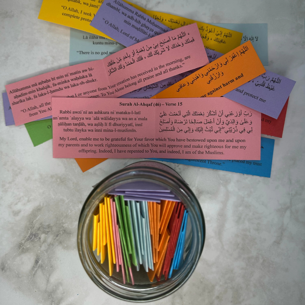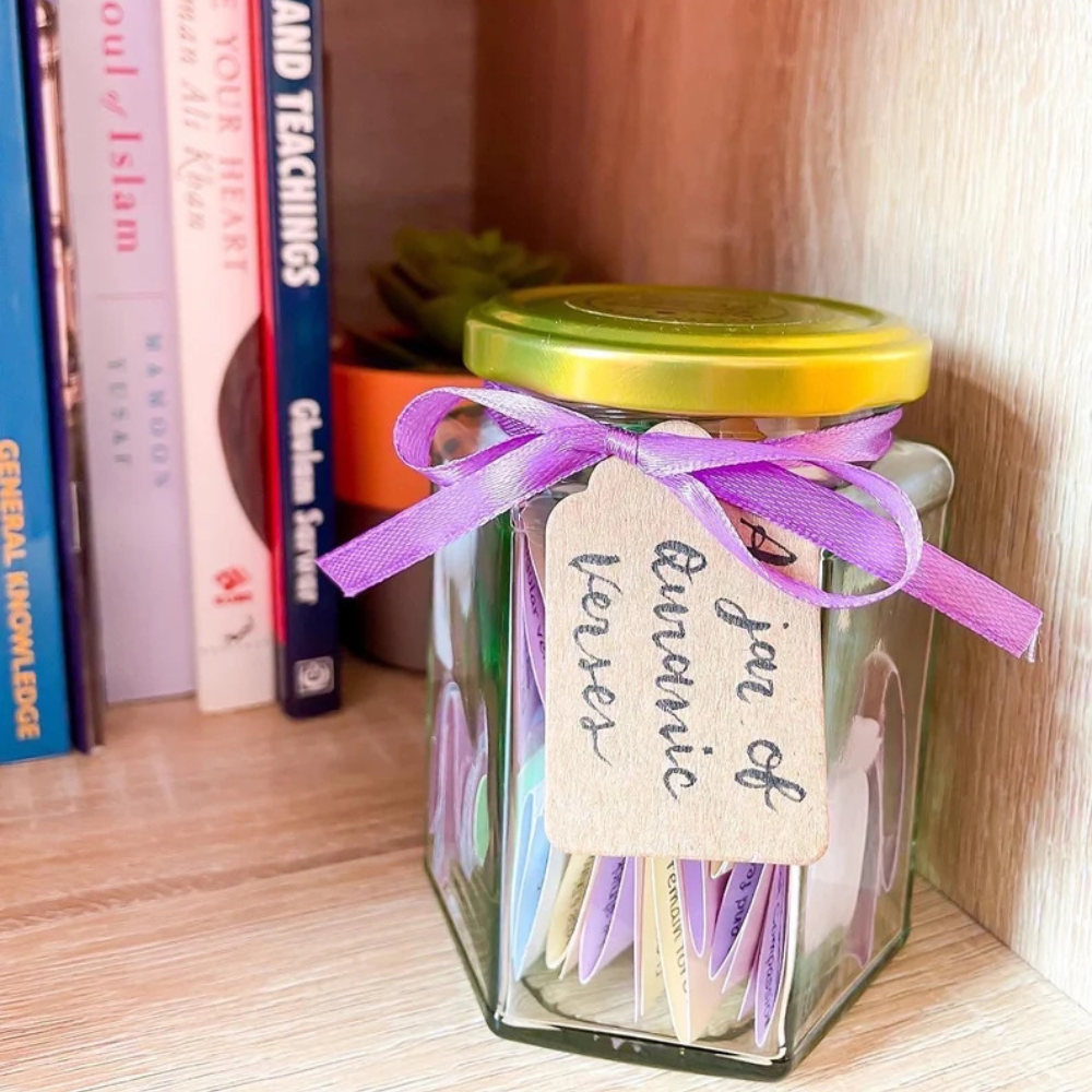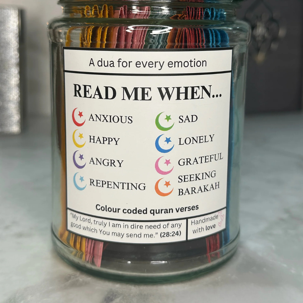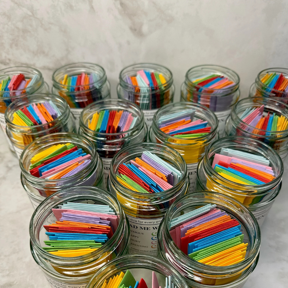 Each color-coded card in the jar represents a different emotion, with a carefully selected Quranic verse that aligns with that feeling.